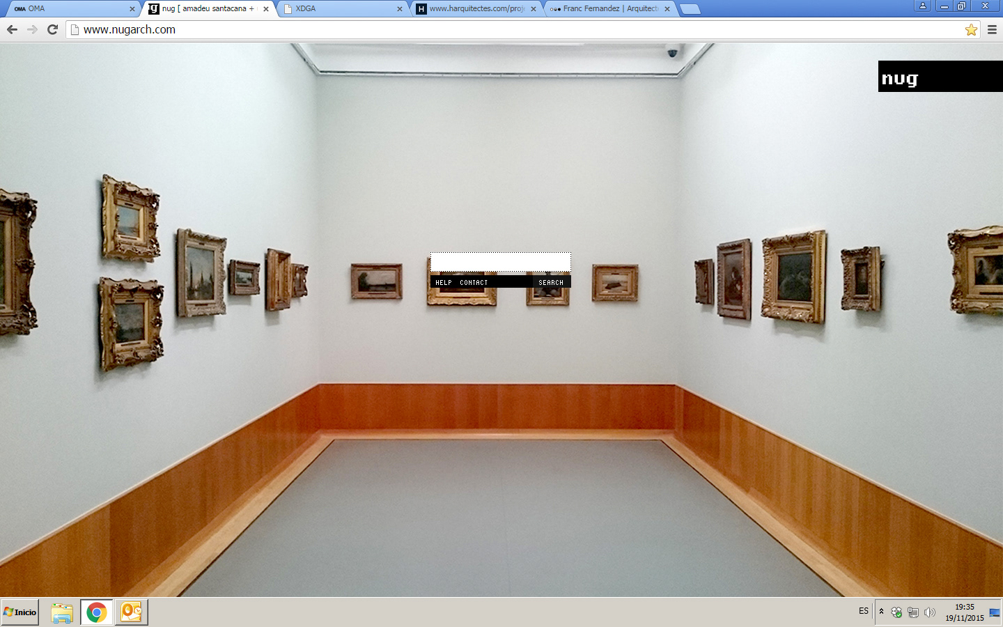 Coloring the tags emphasized the concepts but depending on the image could mess up the colors. Nug quite liked the black and white attitude and preferred to keep the design as discreet and minimal as possible. In the second image I tried to challenge the convention that the container (web) should not interfere the content (images). As expected it was discarded but I think it had a point: since you can’t publish a building on the web (only images of it) accept the medium, its limitations and opportunities, and address the site as a project, not a neutral container.