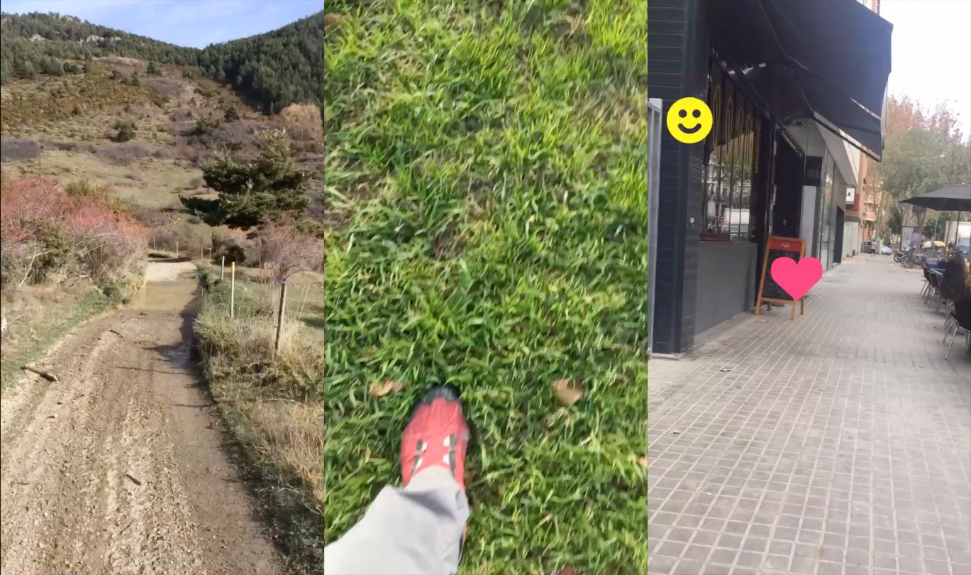 What are the roles of graphic design in the public space? On january 2017 I walked exactly 1km in the Pyrenees (mountain), 1km in Parc del Llobregat (urban park), 1km in Barcelona, Poble Nou (city). I recorded the graphic signs from a citizen point of view, and applied icons according to the role of each sign. Walking in this quiet neighborhood of Barcelona one workday morning I was exposed to graphic signs the 55% of the time, crossed 97 people and 146 signs: 74 shop signs, 32 ads, 29 public signs ands 11 wall paintings.